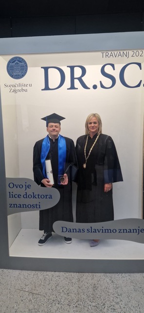 U velikoj dvorani Regionalnoga centra za razvoj poduzetničkih kompetencija za zemlje jugoistočne Europe – SEECEL, u subotu 25. travnja 2026., održane su dvije svečane promocije doktora znanosti i doktora umjetnosti Sveučilišta u Zagrebu. Tom prigodom rektor prof. dr. sc. Stjepan Lakušić promovirao je 371 doktora znanosti i doktora umjetnosti Sveučilišta u Zagrebu među kojima je i naš dr. sc. Dino Bosilj.